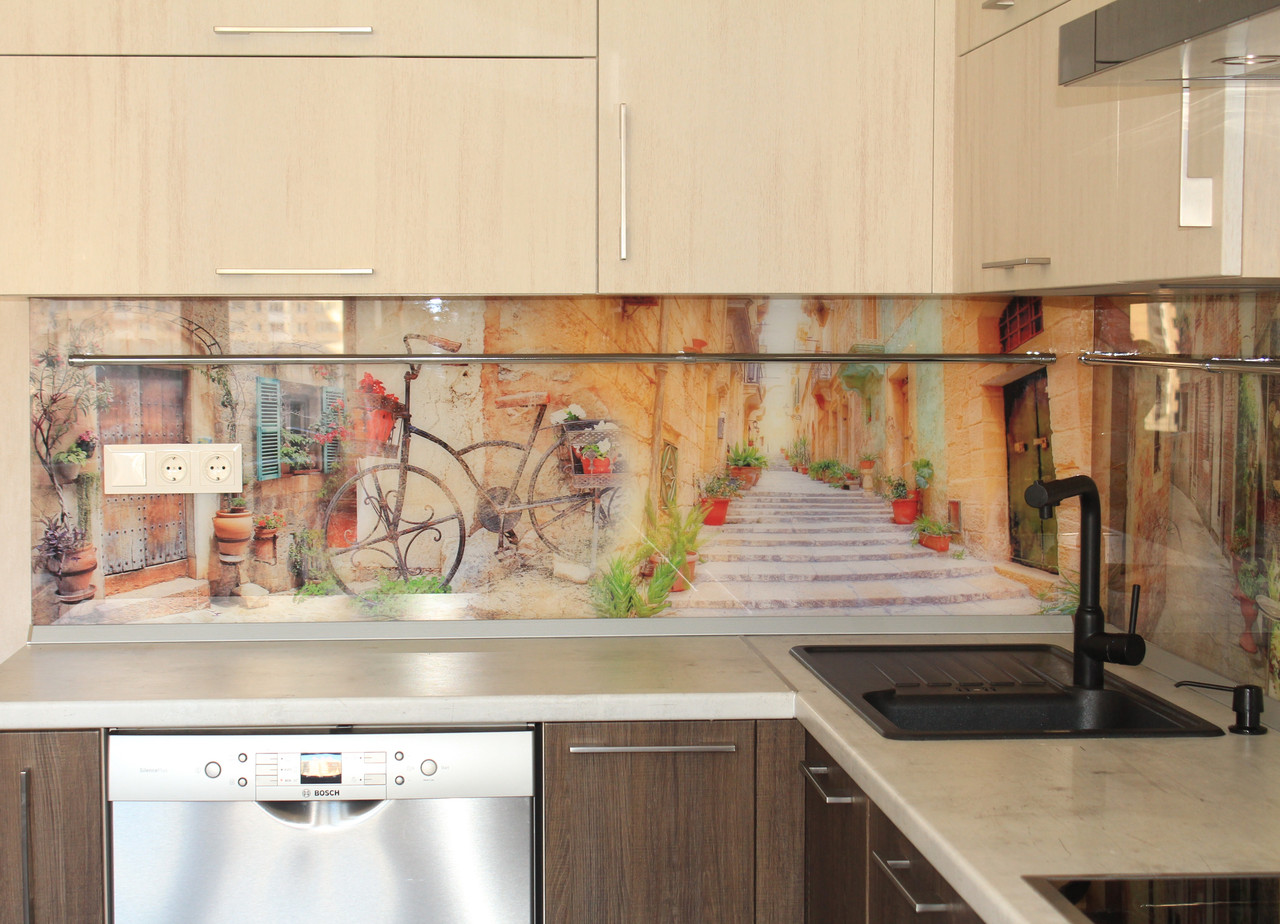 - Une vaste sélection de dessins vous permettra de choisir le panneau pour tous les intérieurs de cuisine.