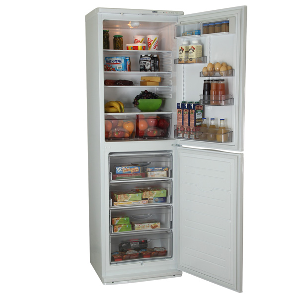 Ce modèle est le plus économique, son prix de détail commence à 13 200 roubles.Le boîtier de l'appareil d'une hauteur de 142 cm est en métal et plastique. La couleur du boîtier est en blanc. Le volume de la chambre de réfrigération est de 168 litres et celui du congélateur, de 76 litres. Le congélateur est situé en bas. Parmi tous les modèles, c’est le plus économe en énergie, la consommation d’électricité est réduite à 292 kWh / an. Certes, le poids des produits congelés par jour ne dépasse pas 3 kg. Les chambres de congélation et de réfrigération étant desservies par un seul compresseur, le niveau sonore ne dépasse pas 39 dB. La conservation du froid est de 17 heures.