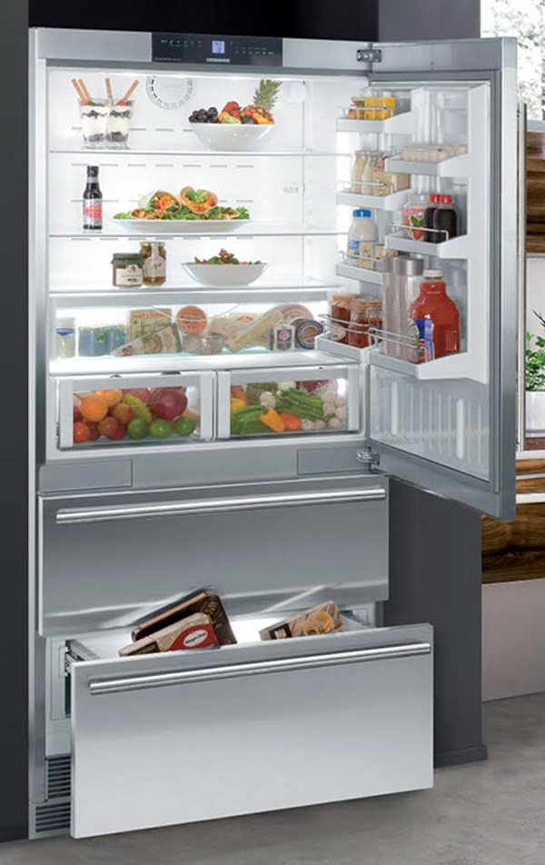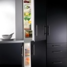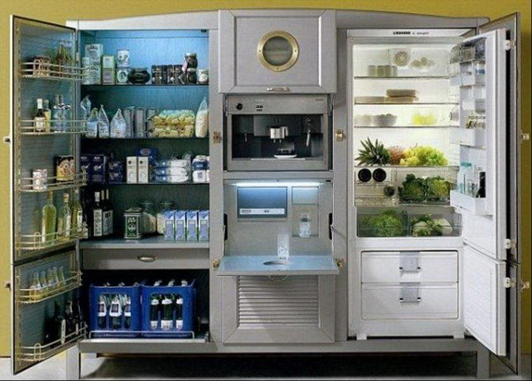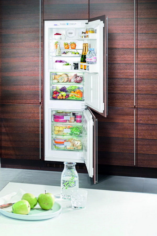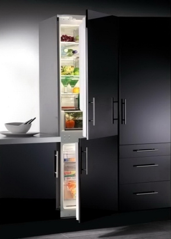La technologie intégrée est intéressante car elle a toutes sortes de tailles. Vous pouvez donc choisir un réfrigérateur d’une largeur de 40 à 45 cm et d’une hauteur de 2 m, si la largeur de 70 cm vous convient, vous pouvez trouver de tels meubles avec des appareils électroménagers.
