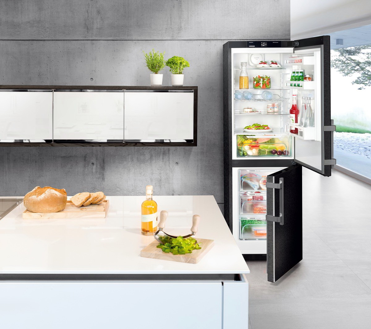 Dans cette cuisine, les appareils peuvent comporter un ou deux compresseurs. S'il y en a deux, vous aurez alors la possibilité de régler séparément la température dans chaque chambre.