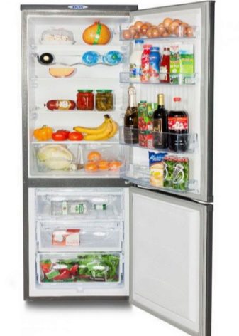 R-297 - le poids de l'appareil est de 71 kg, la hauteur de l'appareil est de 200 cm, y compris un bidon d'huile, un compartiment à œufs et une brosse pour le nettoyage en cours de décongélation. Vous pouvez régler manuellement la température à l'intérieur de l'appareil à l'aide d'un thermostat. Les étagères sont en verre, elles sont durables et fiables. Vous trouverez ci-dessous deux boîtes pour les fruits et légumes. Il y a la possibilité de raccrocher les portes. Le compartiment congélateur est situé dans la partie inférieure et il y a deux caméras dans l'appareil. Dégivrage goutte à goutte qui doit être fait manuellement. Il n'y a pas de générateur de glace. Disponible en 9 couleurs différentes. Le modèle a les critiques les plus positives parmi les acheteurs.