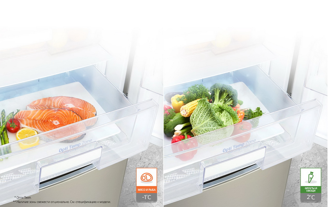 - Une zone de fraîcheur est prévue dans chaque compartiment réfrigérateur. grâce à quoi les fruits et les légumes peuvent conserver leur arôme et leur goût plus longtemps. Une particularité de cette zone est que la température y est de zéro degré, ce qui permet de conserver les produits beaucoup plus longtemps et de ne pas perdre leur goût.