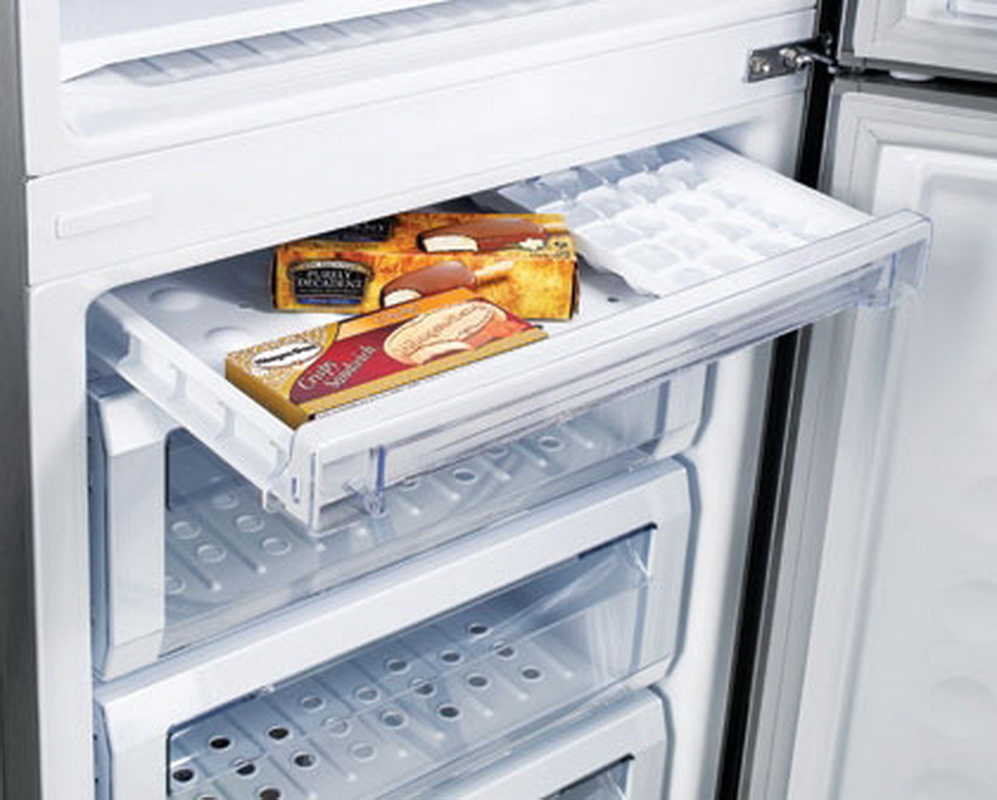 - Les réfrigérateurs modernes à deux compartiments de Samsung sont dotés de parois uniques.qui ne gèlent pas, ils n'ont donc pas besoin d'être décongelés en mode manuel. Bien entendu, cela a un effet positif sur le confort et la facilité d'utilisation.