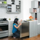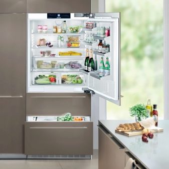 - Capacité à s'adapter à tous les styles et à la décoration intérieure. Dans le même temps, certains modèles n’affectent pas ces caractéristiques car ils se cachent derrière les portes. Les réfrigérateurs partiellement intégrés doivent également être sélectionnés selon leur conception afin de s’intégrer correctement dans le concept général de la pièce.