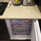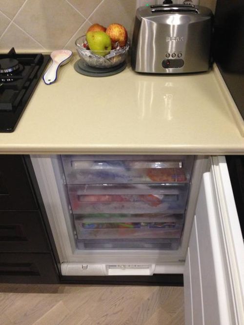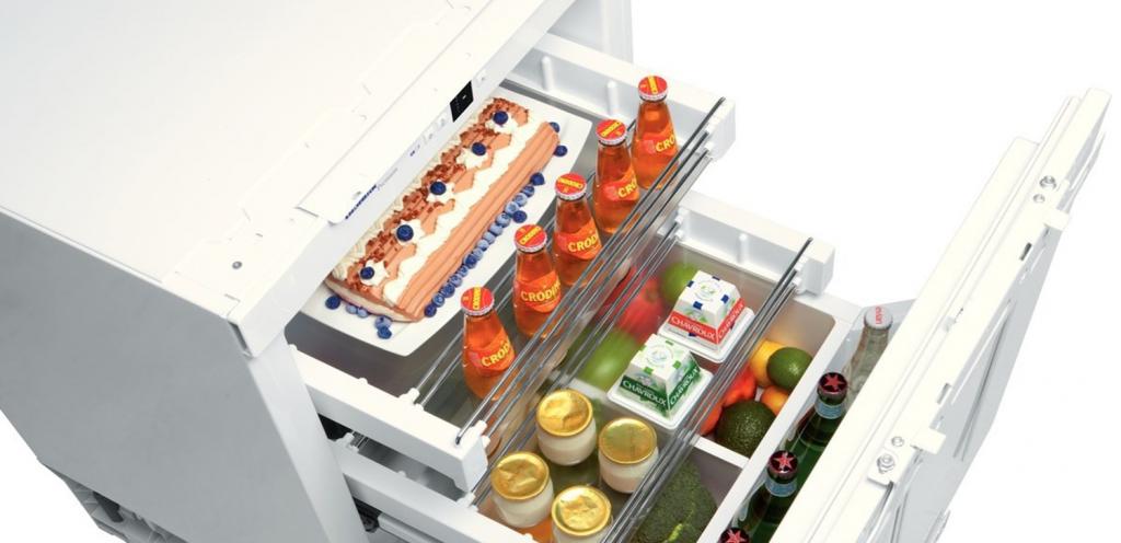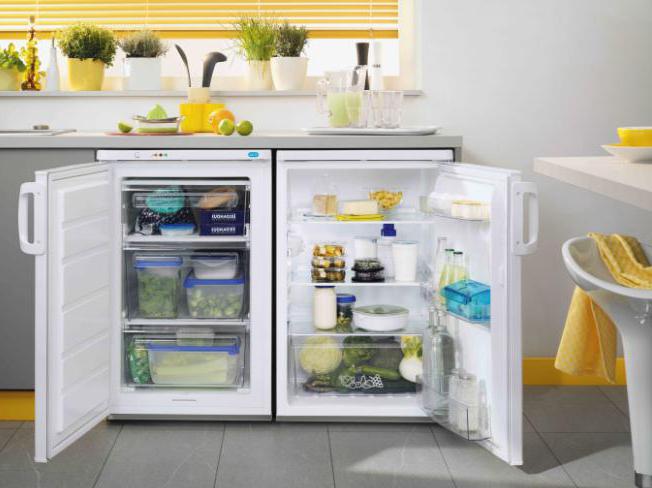 - Dessins avec un congélateur. Les unités de réfrigération de ce type avec de petites dimensions sont assez rares. Néanmoins, ils peuvent être trouvés sur le marché, car ils sont très pratiques et vous permettent de stocker plusieurs types de produits à différentes températures.