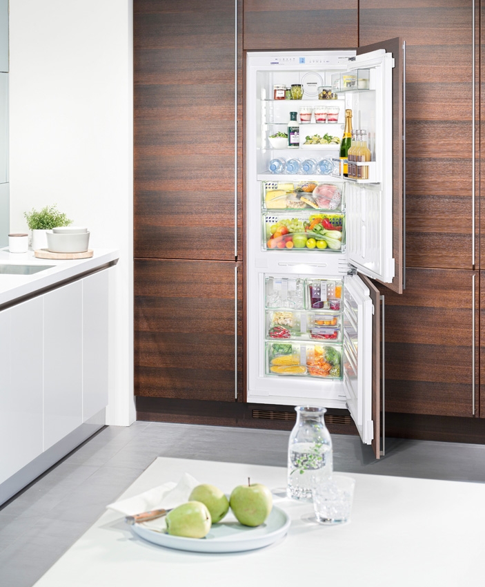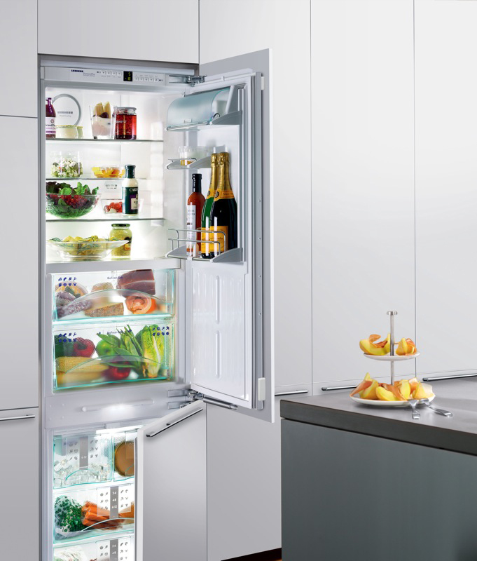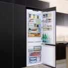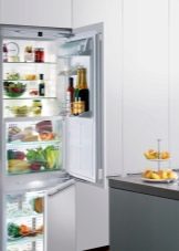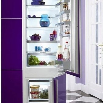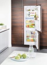 - Réfrigérateurs intégrés. Cette technique est conçue pour pouvoir être placée dans des niches spéciales pour meubles. Ainsi, non seulement économiser de l'espace, mais a réalisé sa décoration. Les caractéristiques techniques de telles structures ne sont pas très différentes des types standard. Ici vous pouvez trouver des systèmes complets jusqu'à 300 litres.