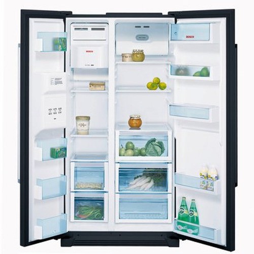 - Bosch KAN58A55. Cher réfrigérateur équipé de deux portes verticales. La conception fonctionne sous le contrôle de deux compresseurs et du système No Frost. Le volume total des chambres atteint 531 litres. Parmi les lacunes peuvent mettre en évidence le prix des filtres, ainsi que le service non développé.