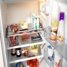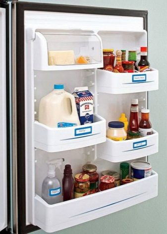 En plus des tablettes principales pour optimiser l’espace, il est pratique d’utiliser la tablette de porte en verre «balcon».. Ceux-ci sont situés sur la porte latérale du réfrigérateur, c’est-à-dire qu’ils sont montés directement sur la porte. Sur eux, vous pouvez mettre des supports pour les œufs et les bouteilles. Il fournit également la température optimale pour stocker divers médicaments et produits cosmétiques qui doivent être stockés dans un endroit frais et sombre. Certains balcons ont des couvertures, ce qui est très pratique si vous devez attacher différentes choses.