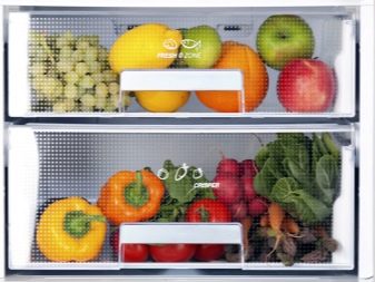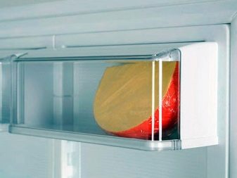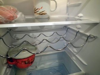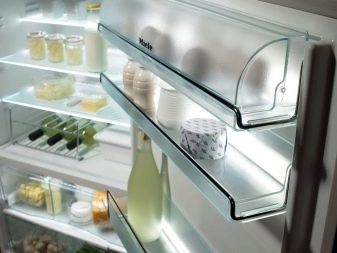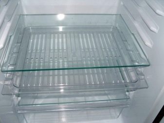 Un avantage supplémentaire des étagères en verre - les surfaces en verre trempé transparent ornent le contenu interne du réfrigérateur, elles sont faciles à entretenir.Le principal inconvénient de la conception est un obstacle au mouvement normal des masses d'air dans le réfrigérateur.