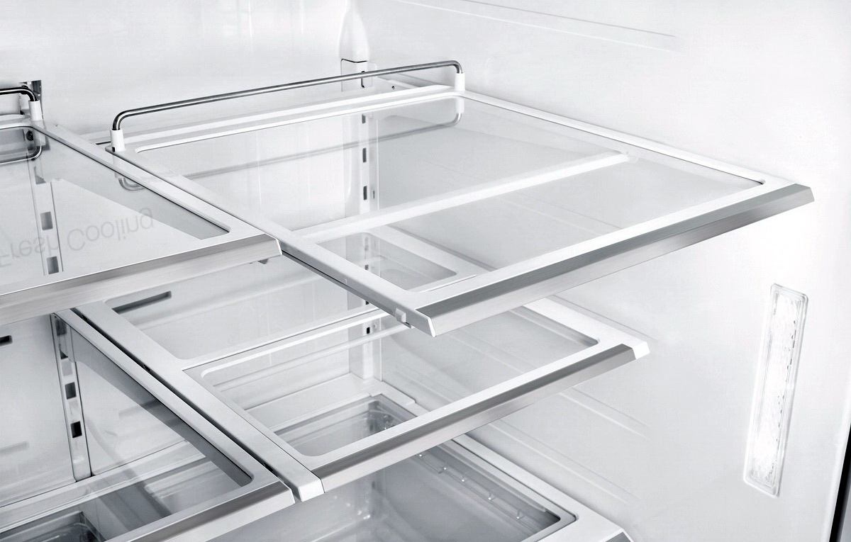 Malgré l’émergence de nouveaux matériaux, les surfaces en verre continuent d’être installées dans les équipements de réfrigération en raison de leur durabilité et de leur fiabilité. Comme le montrent les années de fonctionnement, le verre est l'option la plus efficace pour le remplissage interne de l'appareil. Il est facile à nettoyer et laver, maintenir en bon état.