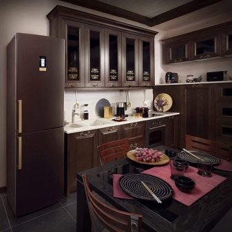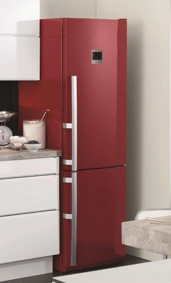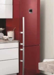- Les poignées permettent de diversifier la conception du réfrigérateur. Ils sont faits de divers matériaux. Cela vous permet de les combiner avec presque n'importe quel type de technologie.