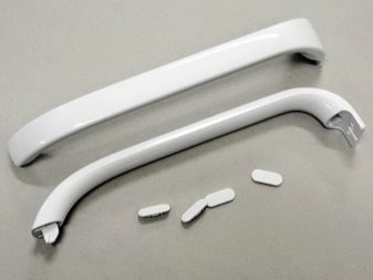 Les poignées pour les réfrigérateurs sont des produits spéciaux qui sont fixés à la porte avec des boulons ou des vis spéciales. Chaque fabricant leur donne une forme unique qui permet aux raccords de s’intégrer au style général. Il convient de noter que les produits sont adaptés à la taille des mains et que leurs caractéristiques techniques sont calculées en tenant compte des charges de base. Cela réduit les risques de dommages lors d'une ouverture brusque de la porte.