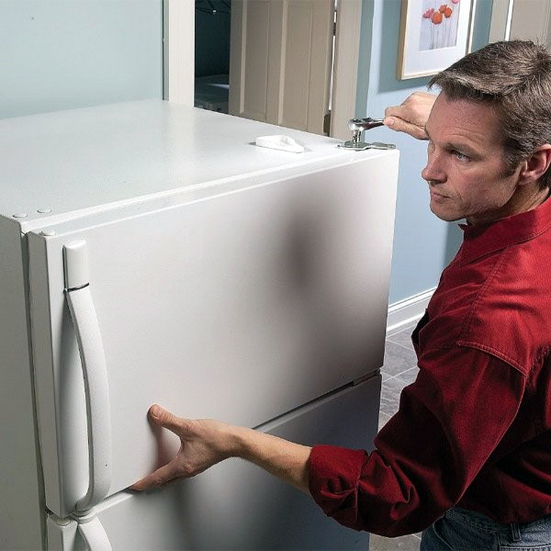 - Top. Ces produits ne sont attachés qu'au sommet. Souvent, cette approche ne concerne que les petits réfrigérateurs dont la hauteur n’est pas supérieure à 150 cm.