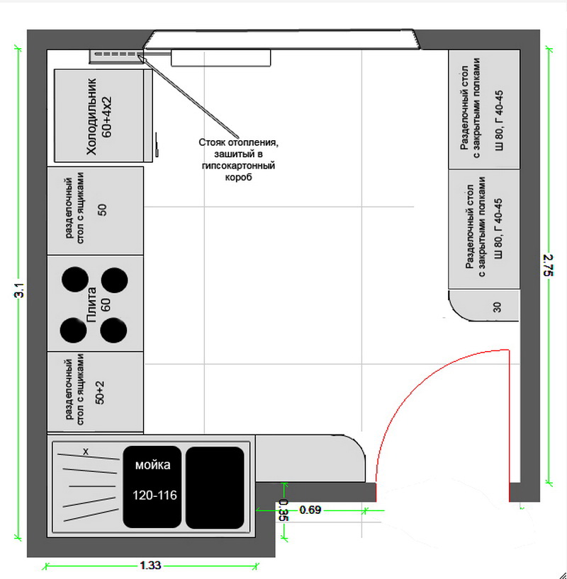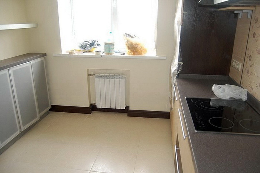 Une variante est possible avec un tuyau qui peut aider à protéger le radiateur du rayonnement thermique. Dans ce cas, le tuyau d'eau chaude doit être isolé avec des matériaux spéciaux. Mais cette méthode ne convient pas toujours. Dans une petite cuisine avec du mobilier déjà disposé, cela est extrêmement difficile.