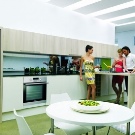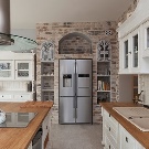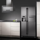 La deuxième option, comme la précédente, consiste en un grand réfrigérateur Samsung RS-57 K4000SA à deux portes avec dégivrage indépendant et grande capacité. Dans une grande cuisine, il est déconseillé de le placer dans un coin car il semble encombrant, mais il est préférable de le placer près de la porte ou au centre.