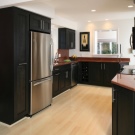Un réfrigérateur noir convient à toute cuisine moderne. Et comme la technologie du verre noir a toujours l’air élégant. La seule chose que vous ne devriez pas faire est de noircir toute la cuisine, car cela n’aura pas l’air très intéressant. Au lieu de cela, ajoutez une couleur beige ou blanche, mais n'oubliez pas de "soutenir" votre appareil nouvellement acheté avec une teinte noire, en l'incarnant dans des plans de travail, des chaises ou des appareils ménagers.