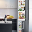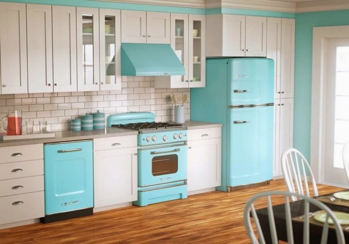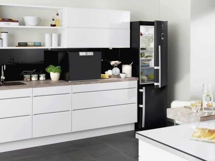 Si tous les meubles et appareils de la cuisine sont de la même couleur, il est préférable de choisir un réfrigérateur de couleur contrastante. Il a également l’air agréable lorsque la pièce est réalisée dans une couleur classique noir et blanc et que le réfrigérateur la complète avec l’une des nuances ou se distingue, par exemple, en rouge.