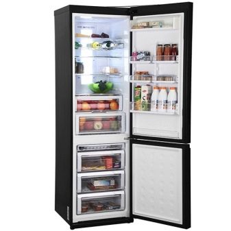 Le seul inconvénient du réfrigérateur de cette couleur est sa pollution. Après tout, nous touchons constamment une telle technique avec nos mains et des empreintes digitales restent à la surface. Mais ils sont faciles à essuyer avec un simple chiffon doux.