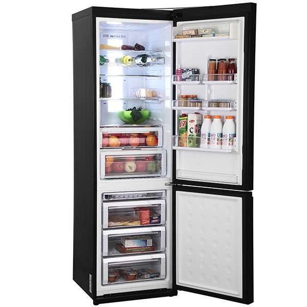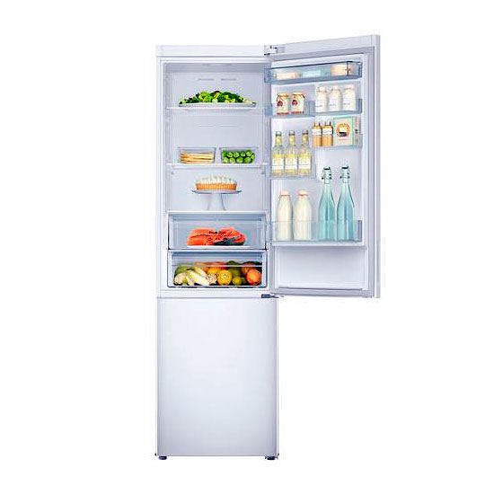 Le deuxième modèle est le Samsung RB-37 J5450WW. Il est moins spacieux et convient à une petite cuisine et à un petit nombre de personnes. Le congélateur est en bas et le contrôle se fait également par l’affichage sur le boîtier.