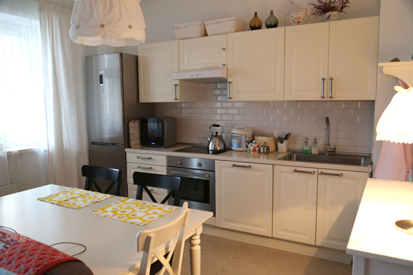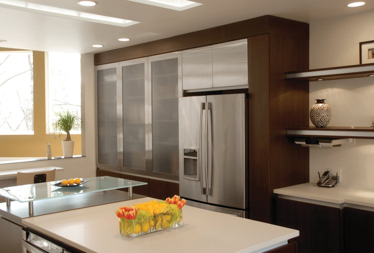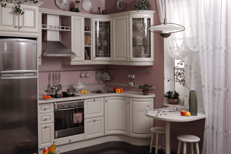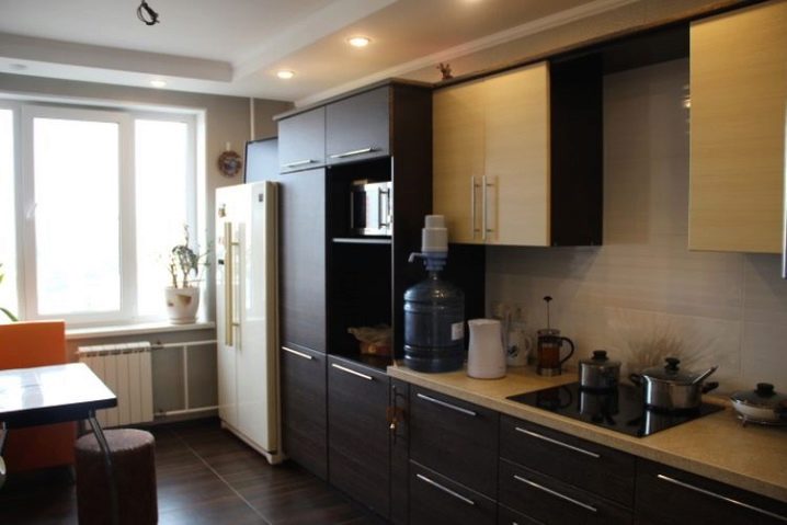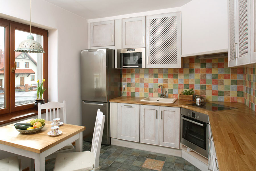 Cette technique est généralement choisie en fonction de la couleur du "tablier" ou de la table et des chaises de cuisine. Une autre règle - lorsque plusieurs pièces sont en acier, il serait bon d’avoir un réfrigérateur en couleur.