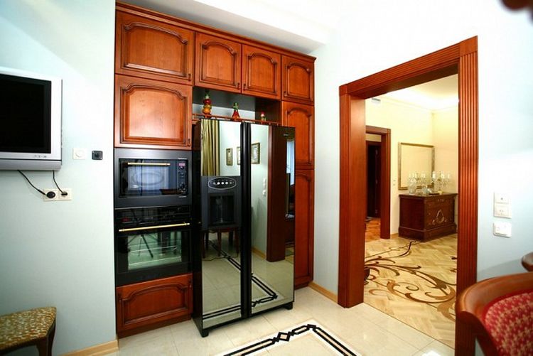Ce réfrigérateur est bon pour agrandir l'espace, mais pas seulement. Il peut être choisi pour n'importe quel intérieur, car le verre n'a pas de couleur en soi et reflète ce qui est autour. En outre, ce géant du verre aura l’air élégant et beau n’importe où.