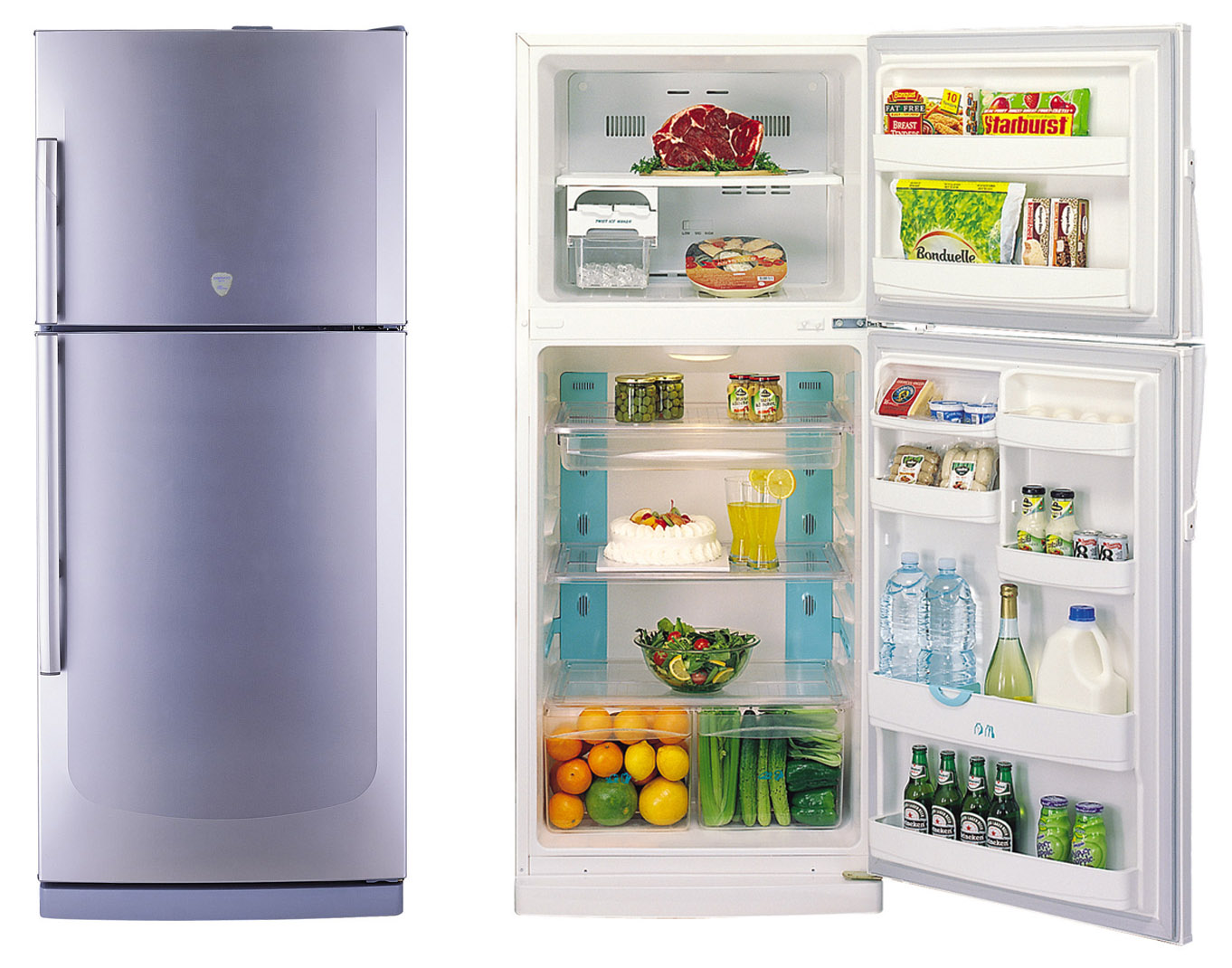 Dans certains magasins de vente au détail spécialisés à vendre, vous pouvez trouver des unités de réfrigération à deux chambres de «type élancé». Ils sont principalement fabriqués sous les marques Shivaki et Samsung. Dans les modèles dont la largeur ne dépasse pas quarante centimètres, la chambre basse est généralement occupée par un congélateur. Une chose incroyablement pratique et pratique a une porte séparée, plusieurs compartiments et tiroirs pratiques. Dans chacun, vous pouvez stocker indépendamment certains produits.