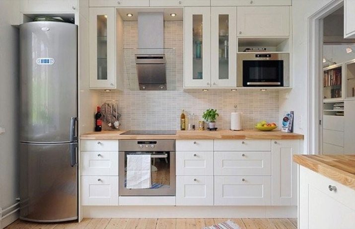 Sa principale différence avec la stationnaire est qu'une telle unité ne prendra pas beaucoup de place. Pour les petites cuisines, c'est l'option la plus idéale. La technique étroite peut être placée près de la fenêtre, dans l’ouverture entre le mur et la table à manger. Il peut prendre sa place même dans le couloir menant à la cuisine. La taille standard de l'équipement de réfrigération conventionnel telles manipulations avec l'installation pour permettre définitivement ne peut pas.