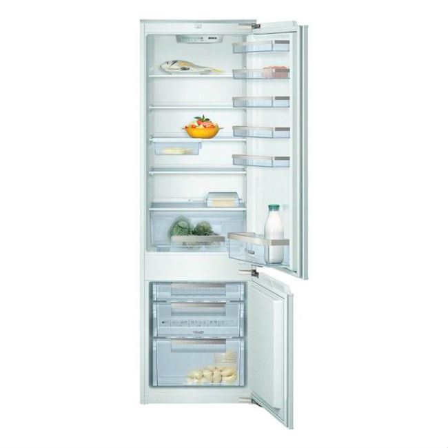 - Bosch KIS38A51. Réfrigérateur à deux chambres d'une largeur de 54 cm Les caméras occupent un volume de 285 litres. La capacité de congélation atteint 12 kg / jour.Parmi les aspects positifs, on peut distinguer la présence d’un revêtement antibactérien et la possibilité de suspendre la porte.