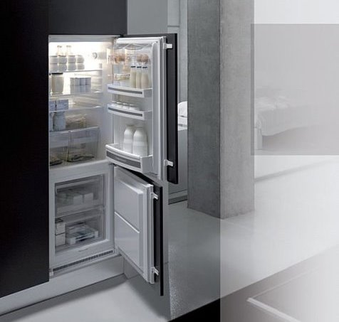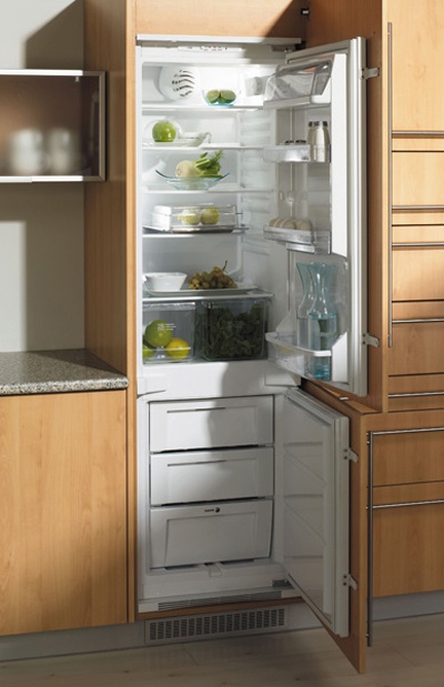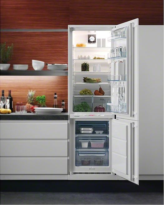 Les réfrigérateurs intégrés sont très populaires. Ils occupent moins d'espace et s'intègrent harmonieusement à l'intérieur d'une cuisine. L'un des plus populaires est le réfrigérateur intégré à deux chambres Electrolux.