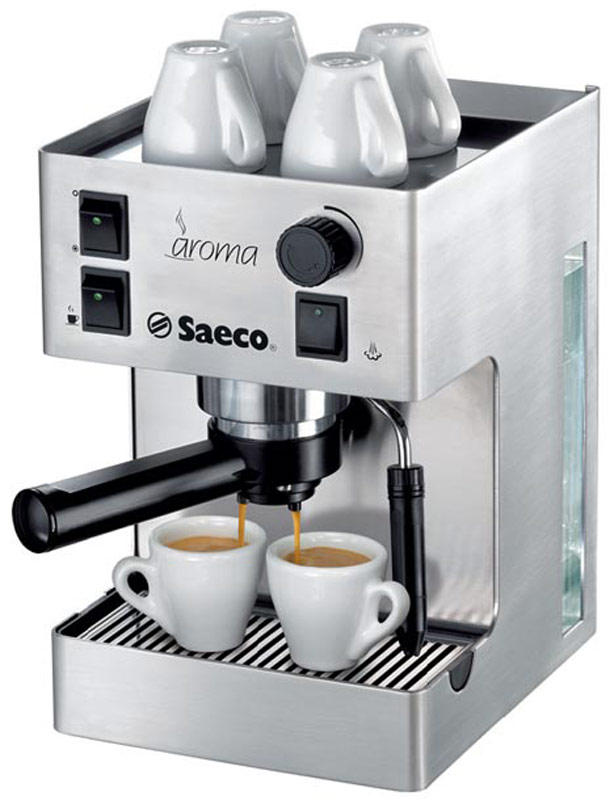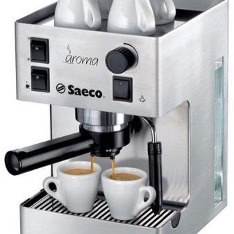 - Le café à base de cosses est également préparé par la chaudière Aroma Inox.. Il a un cappuccinateur supplémentaire, est dosé dans 2 tasses, équipé d'une plate-forme chauffée pour des tasses.