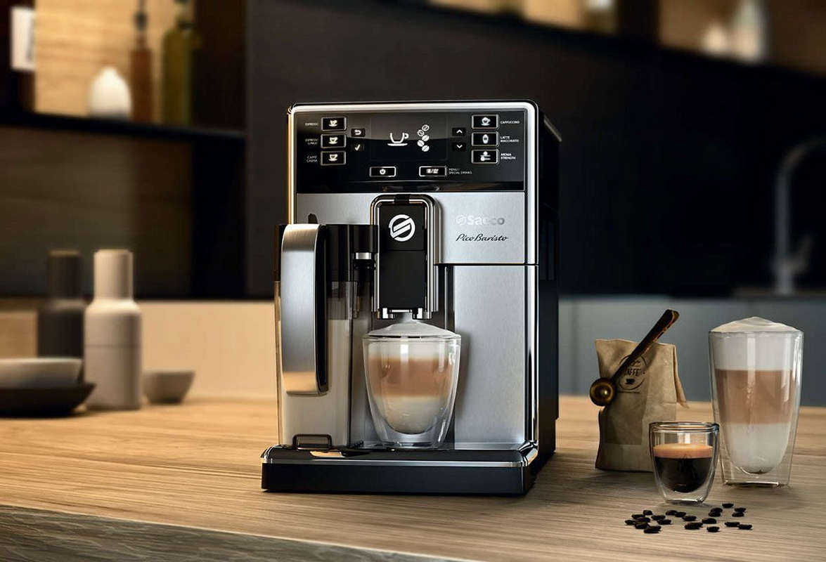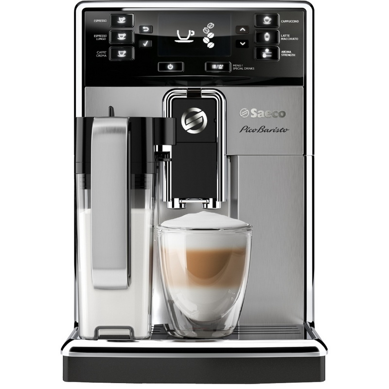 - La machine à café Picobaristo est beaucoup plus grande que les autres modèles, elle est équipée d'électronique, le design est légèrement modifié. La partie avant en acier est très élégante, mais couvre également les sons d'une machine en marche. Ajout de la fonction de nettoyage rapide du cappuccinateur. Avec un simple clic vous permet de préparer 5 boissons, plus plusieurs variétés sont préparées par une clé séparée. Toutes les proportions de la relation entre café et lait peuvent être personnalisées à volonté.