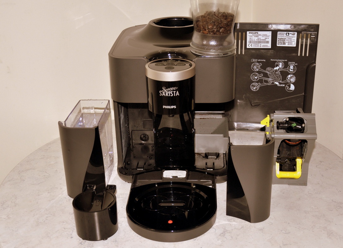 - Sarista - machine à céréales, idéale pour les familles ou les bureaux, dans laquelle les goûts des variétés de café sont fondamentalement différents. Sur cette machine, avec l'aide d'un bunker en plastique amovible en un seul mouvement, vous pouvez changer le grain en l'alternant séparément pour chaque gobelet. Mais cette machine ne prépare pas de boissons au lait, ne fournit pas d’eau chaude, elle prépare uniquement des classiques du café de différents degrés de force. Le kit comprend un thermos en métal retenant la chaleur pendant plusieurs heures. Les meules dans la voiture ne sont pas en céramique, mais en acier. Il est possible de définir le mode pour six tasses à la fois. Il n'y a pas de contrôle tactile, le contrôle est effectué à l'aide de 5 boutons et de 4 indicateurs. Il convient de noter que la mise en œuvre du détartrage prend un temps relativement long: 45 minutes. Une fois dans 400 tasses, le mécanisme doit être lubrifié avec de la graisse d'origine (la machine ne compte pas le nombre de tasses, vous devez le faire vous-même).