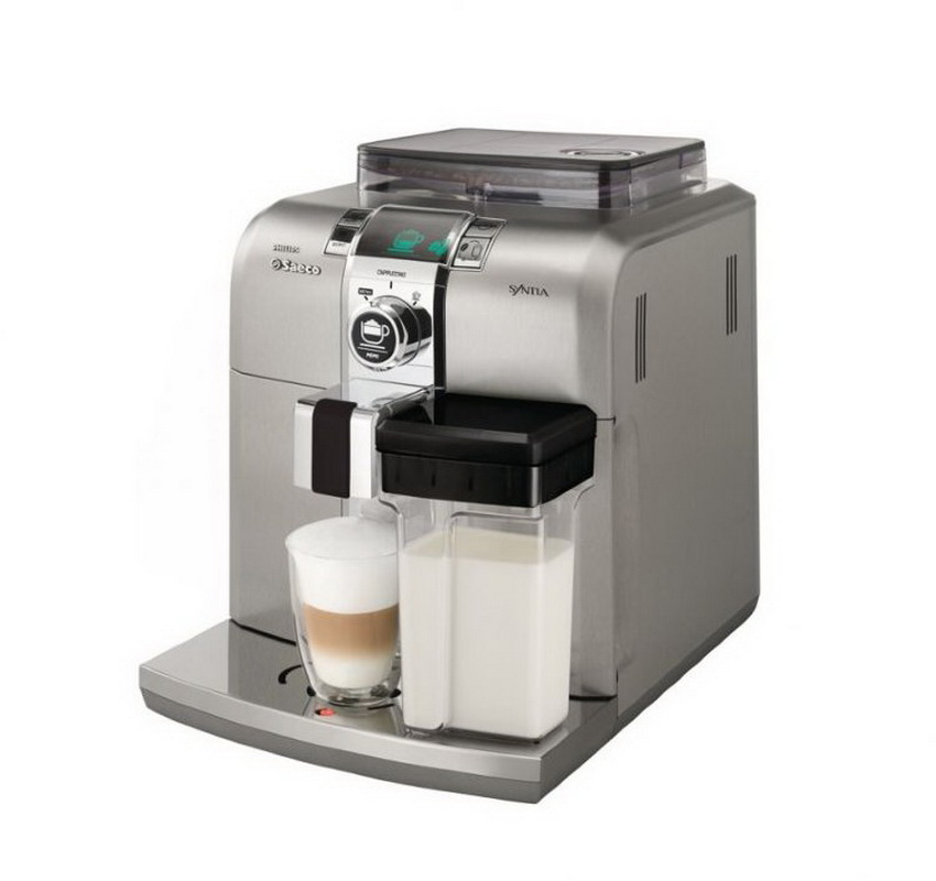 - Saeco HD 8323 39 Poemia - également une cafetière rozhkovy, représentative du manuel semi-automatique, de sorte que sa fonctionnalité est assimilée au travail des machines à café. Il peut utiliser du café moulu et des dosettes.Petites dimensions d'une conception de boîtier stricte. Comme ce n’est pas automatique, une partie du processus doit être effectuée manuellement: moudre le café, s’endormir dans le filtre. Ce modèle possède l'un des meilleurs filtres, un système de corne à ressort très complexe, qui permet de ne pas philosopher sur la qualité de la mouture et du pilonnage. La conception a un cappuccinateur panarello manuel intégré, qui vous permet de faire du cappuccino ou du latte. La conception est très facile à démonter pour les soins nécessaires, il y a une tasse chauffée supérieure. La connexion est très simple.
