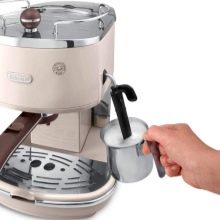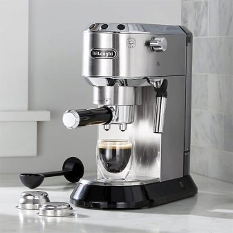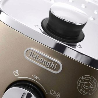 - Nouveau DeLonghi 311avec une capacité de 1100 W et une pression maximale de 15 bar avec son apparence présentable, il s'agencera à tout ensemble de cuisine. En mode semi-automatique, ce modèle avec des tasses chauffées et à arrêt automatique peut cuire rapidement et verser dans une ou deux tasses d'espresso. Le café peut être utilisé moulu ou en comprimés. En mode manuel, la machine prépare un cappuccino avec une mousse de lait stable. À ce jour, le modèle coûte environ 9 500 roubles.