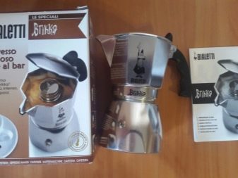 L'appareil avec le système "Brikka", qui permet d'obtenir le produit fini avec de la mousse. Ici, dans le couvercle, il y a un trou qui empêche la formation de condensat qui, en tombant dans la mousse, la diluerait et priverait les amateurs de café de plaisir. Matériau pour la fabrication de ce modèle - aluminium de qualité alimentaire. En volume, il existe des cafetières pour 2 portions (100 ml) et 4 (200 ml).