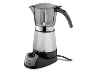 "Bialetti Moka Elettrika" Il vous sera utile sur la route pour que vous puissiez profiter de la boisson aromatique traditionnelle où que vous soyez. Cet appareil est une combinaison de design classique et de capacité à travailler sur le secteur. La cafetière est de couleur chrome, en aluminium et les poignées en plastique. Ce dispositif est de petite taille, ne fait que 18 cm de haut, et le produit préparé dure 2 portions de 50 ml.
