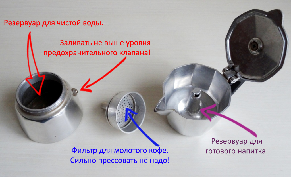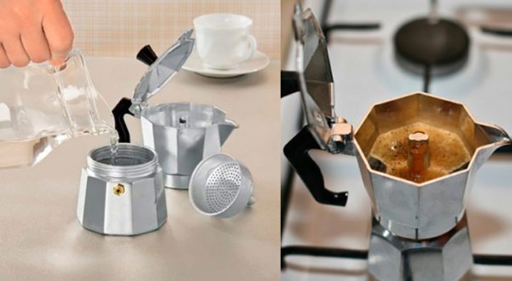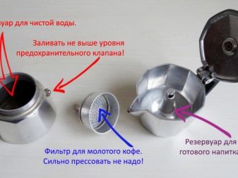 Selon son principe de fonctionnement, la cafetière est assez simple. Dans la partie inférieure devrait être versé de l'eau. Quand il se réchauffe, il passe dans le café moulu en utilisant une pression élevée.