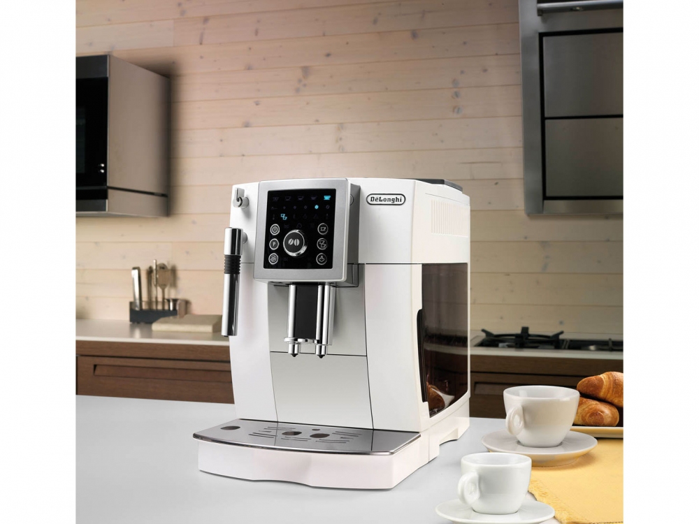 Le modèle est l'un des modèles de caroube les plus populaires et les plus populaires. L'un des éléments distinctifs de l'appareil est son design ergonomique et ses commandes pratiques, grâce auxquelles vous pouvez choisir un mode de fonctionnement confortable de l'appareil. La principale différence est que l'appareil possède la fonction de chauffage des gobelets, grâce à quoi la boisson est prête à conserver ses propriétés gustatives le plus longtemps possible. Le kit comprend une cuillère à mesurer pour le café et toute une gamme d'autres accessoires. Le modèle fonctionne silencieusement et consomme un minimum d'électricité.