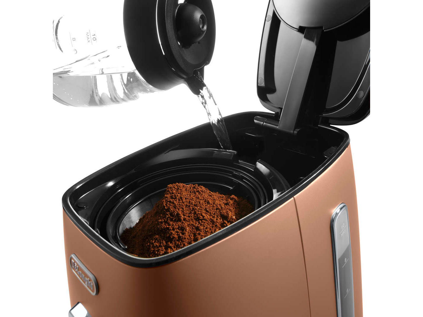 - Verser de l'eau dans un récipient spécial. Les fabricants recommandent l’utilisation d’eau purifiée afin que le goût du café soit plus intense et agréable.