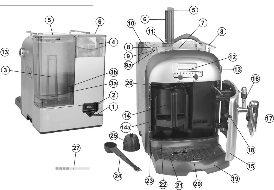 Ce modèle est différent de tous les autres avec un moulin à café intégré, qui a un compartiment où les grains sont versés. Le compartiment est conçu pour 140 g Il est également important que vous puissiez décider vous-même si le broyage sera poussiéreux ou grossier à un degré ou à un autre. Ce processus est remplacé par le suivant: brasser la poudre finie à la vapeur, dont la pression est de 15 bars. Avec un appareil aussi polyvalent, vous pouvez préparer rapidement et facilement un délicieux café qui sera décoré avec une mousse parfumée.