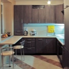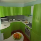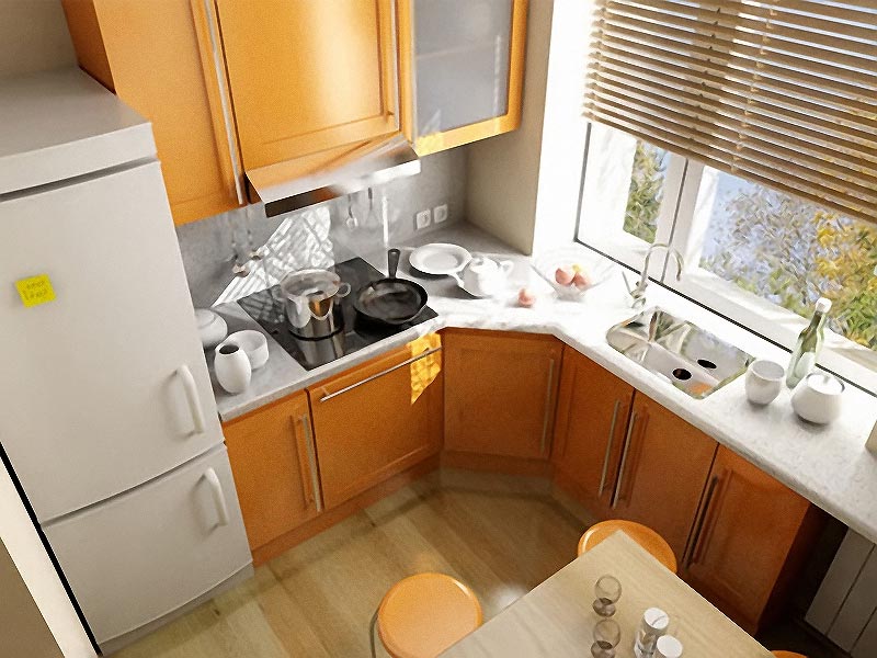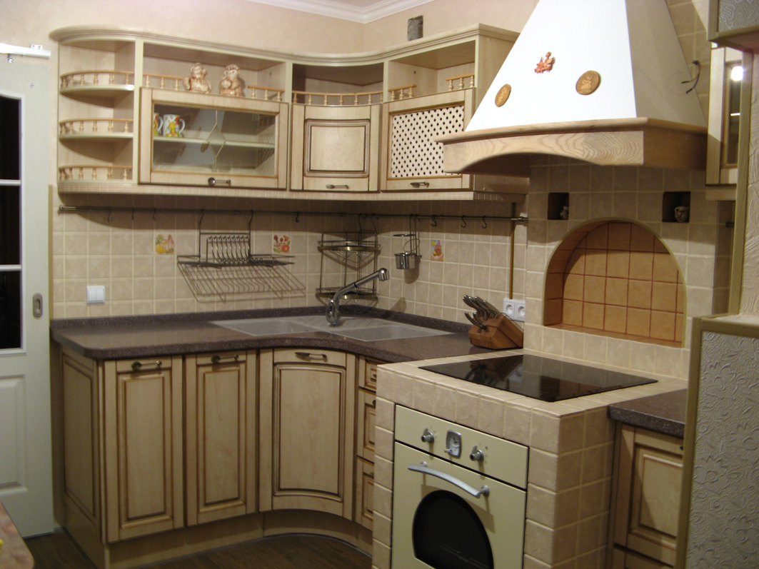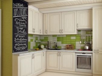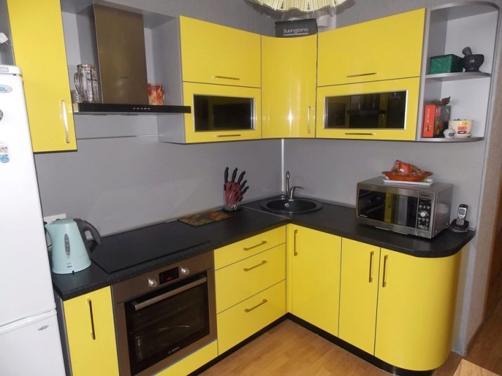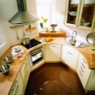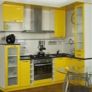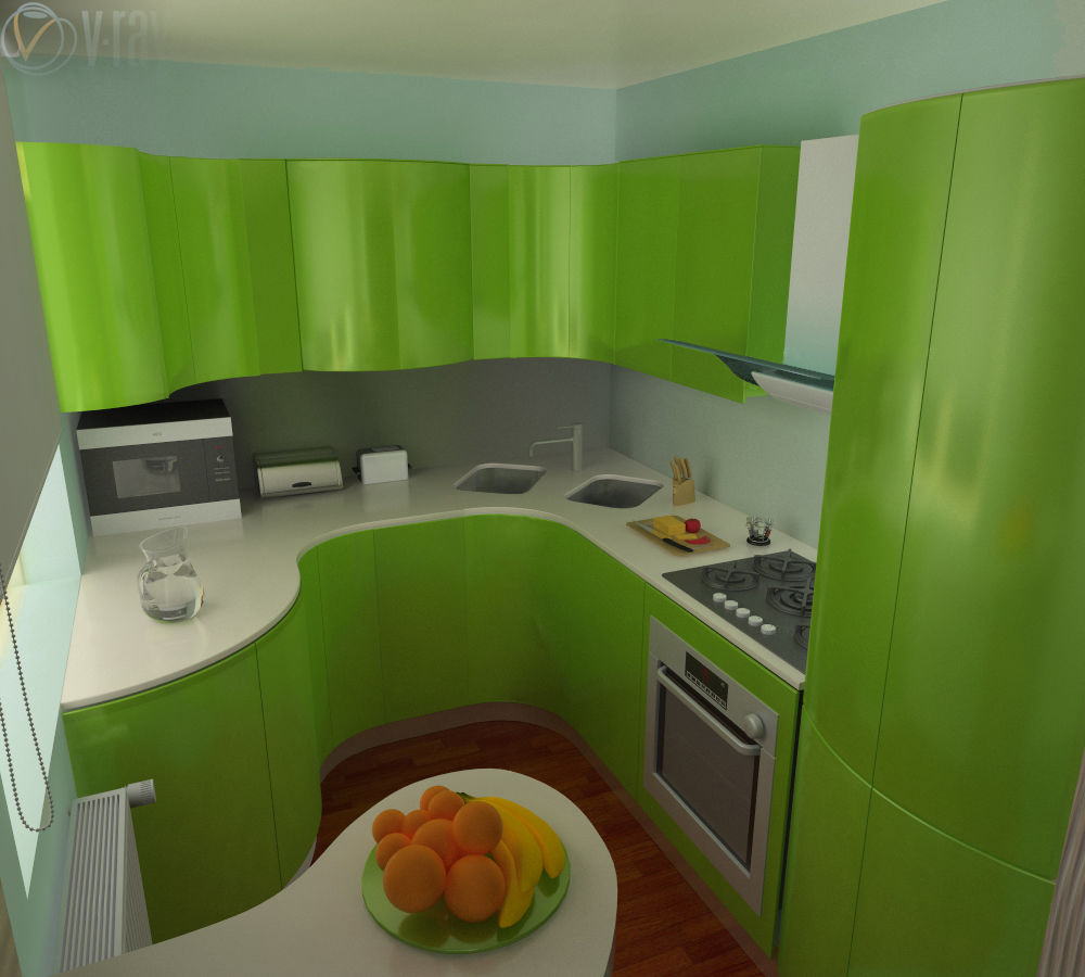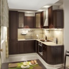 Coin cuisine. Cette option pour la planification de meubles devient de plus en plus populaire. Dans ce cas, tout l’espace disponible est utilisé avec un bénéfice maximal. Cette disposition permet de gagner du temps: vous n’avez pas besoin de chercher, tout ce dont vous avez besoin est toujours à portée de main. En outre, l’ensemble de coins offre la possibilité de séparer la zone de travail de la zone de restauration. Si vous le souhaitez, dans une telle cuisine peut même s'adapter à un coin moelleux.La présence d'armoires supplémentaires déchargera l'espace supérieur et éliminera le besoin d'armoires murales. Un petit conseil: si la commode de la cuisine d'angle est située près de la porte, il est judicieux de rendre son projet arrondi ou biseauté. Cela aidera également à économiser quelques centimètres supplémentaires.