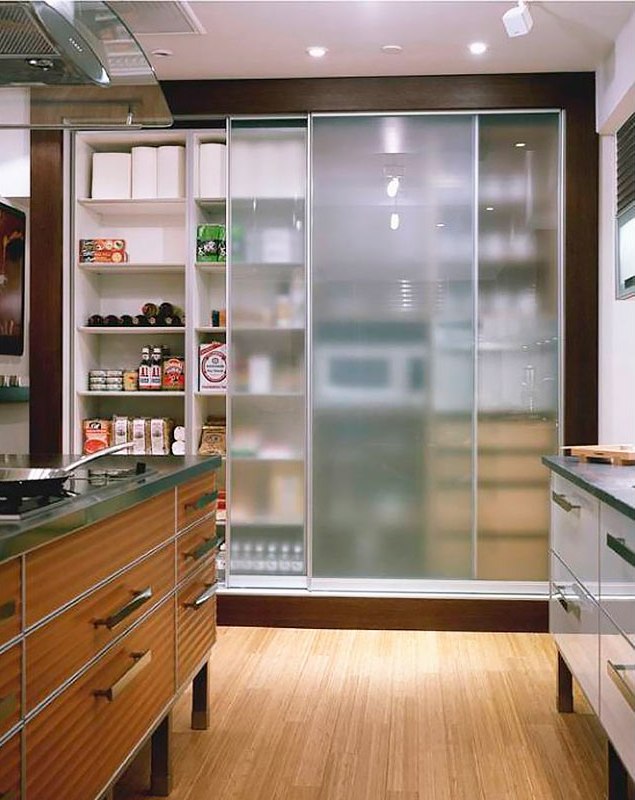 Armoires de cuisine. Nous sommes tous habitués à ce que le placard puisse décorer le salon ou le couloir. Peu pensait que le système de coupe pouvait être utilisé dans la cuisine. Cette solution simple peut être idéale. Toutes les petites choses peuvent être placées au même endroit sans perdre de temps à chercher un ouvre-boîte ou une casserole d'une certaine taille. Pour revitaliser l'intérieur, vous pouvez laisser plusieurs étagères ouvertes sur lesquelles placer des cadres photo ou de beaux plats.