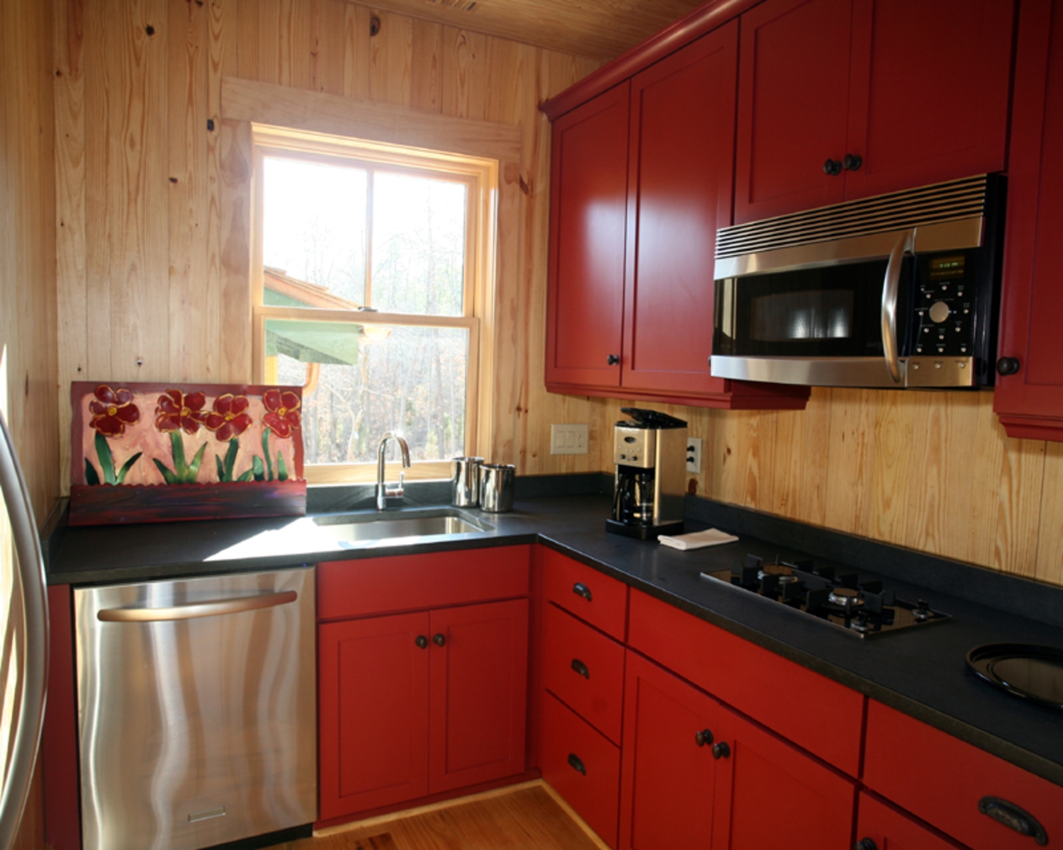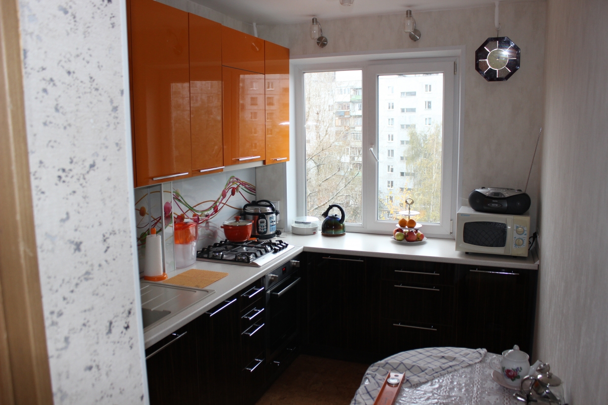 Il est possible de transférer l’évier sur la fenêtre en le connectant à la zone de travail et tout en faisant la vaisselle, mais lors de la cuisson, vous serez toujours au courant de ce qui se passe dans la rue.