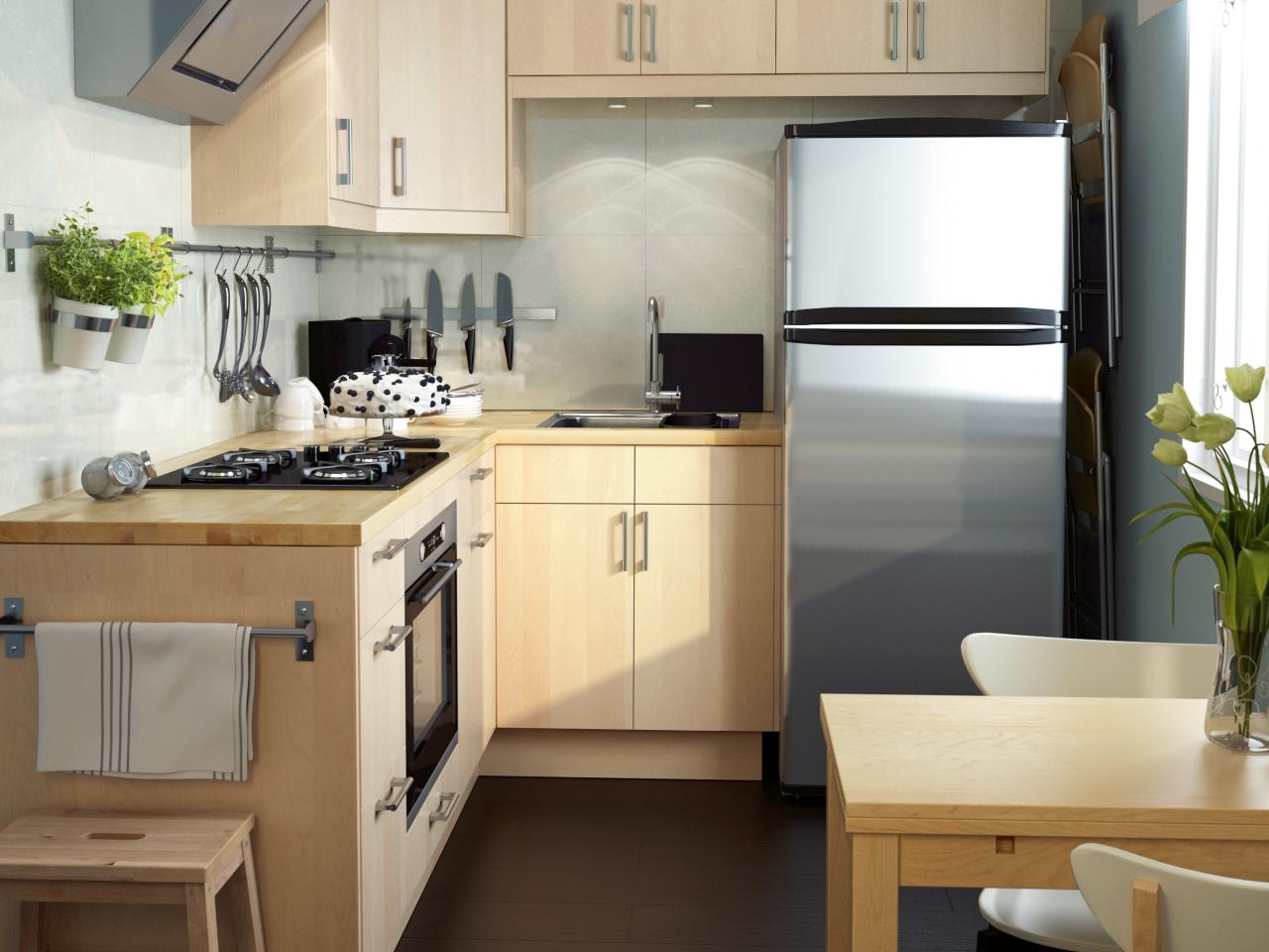 Les concepteurs disent que les meubles pour les cuisines de petite taille peuvent aussi être élégants et beaux. Il existe de nombreuses solutions pour meubler un petit espace de manière à ce qu'il y ait une place pour tout ce dont vous avez besoin et que la disposition des meubles de cuisine est non seulement pratique, mais aussi fonctionnelle. Considérez certains d'entre eux.