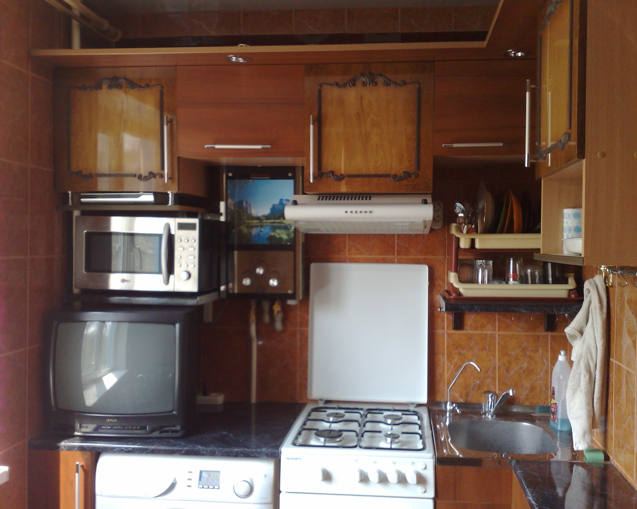Souvent, les communications fixes ne sont pas très bien installées, ce qui complique le choix du mobilier. Essayez d’expérimenter et de réorganiser l’évier, la colonne de gaz et la cuisinière de manière à ne pas laisser un centimètre vide, et vous pouvez, par exemple, construire une petite boîte pour les bouteilles ou les produits chimiques ménagers.