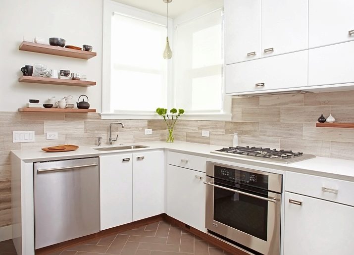 Les experts déconseillent d’ombrer les couleurs vives, criantes ou trop sombres lors de la conception d’une petite pièce. Il est préférable de faire attention à toutes les nuances lumineuses et chaudes. Ils peuvent non seulement agrandir visuellement l'espace, mais aussi le rendre élégant et moderne. Une petite cuisine high-tech, par exemple, peut être réalisée en blanc ou en gris clair. Et seuls les petits détails peuvent être sombres: les décors de carreaux sur le mur, la peinture et même le plateau, mais uniquement en combinaison avec des murs clairs. Pour la cuisine classique, toutes les nuances de jaune, vert pâle peuvent être utilisées en combinaison avec les couleurs or, beige et blanc.