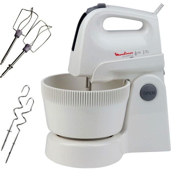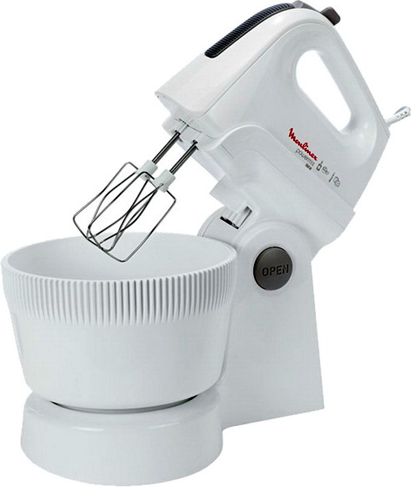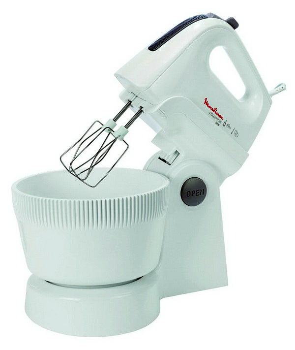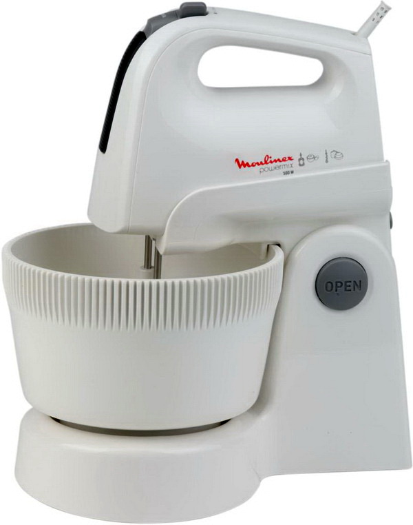 - Le mélangeur fixe Moulinex est une conception qui a une base pliante ou amovible avec un bol pour les produits à battre;
