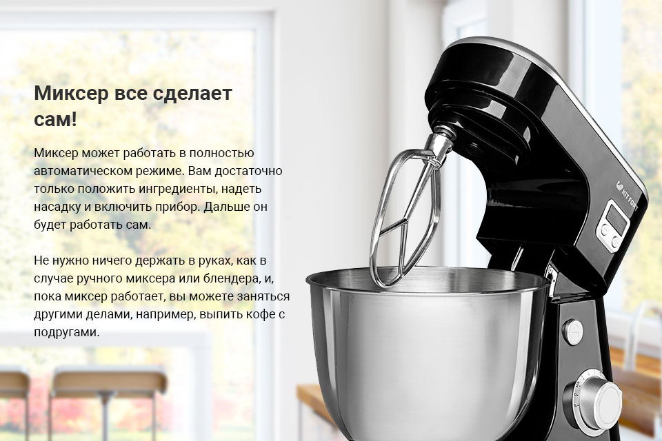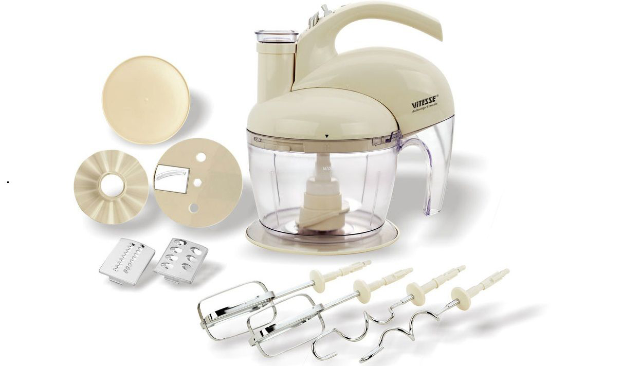 Le mélangeur de cuisine est conçu pour fouetter et mélanger les ingrédients. Il se distingue du mélangeur par le fait qu’il n’a pas une vitesse de travail aussi élevée et n’a pas de lames, ce qui permet de transformer des composants en une seule masse.