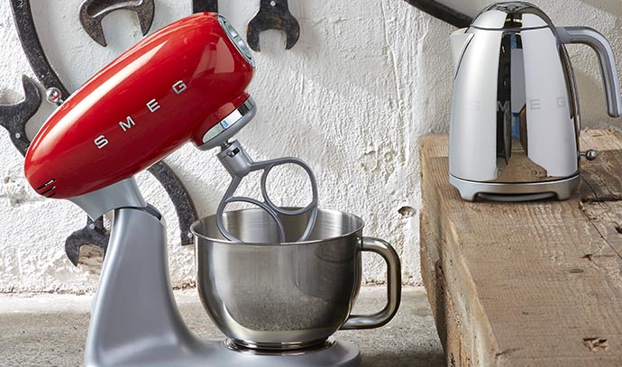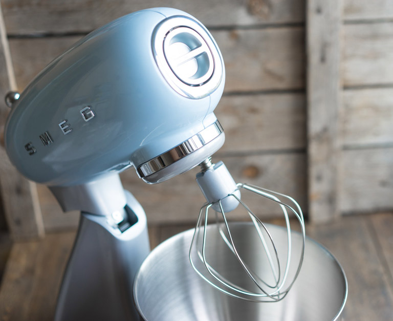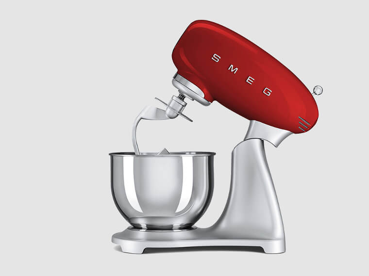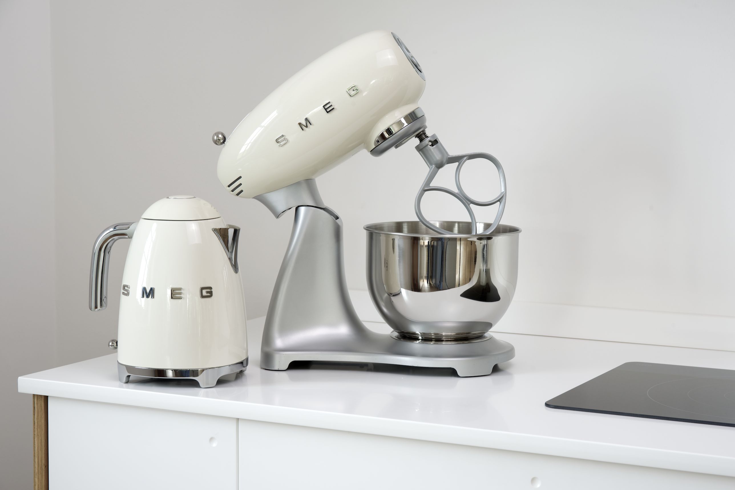 Le mélangeur planétaire du fabricant italien d'appareils électroménagers éprouvé Smeg a non seulement un look élégant impressionnant, mais est également capable de faire face à toutes les tâches de cuisson. Cet appareil est vraiment un appareil de cuisine professionnel.
