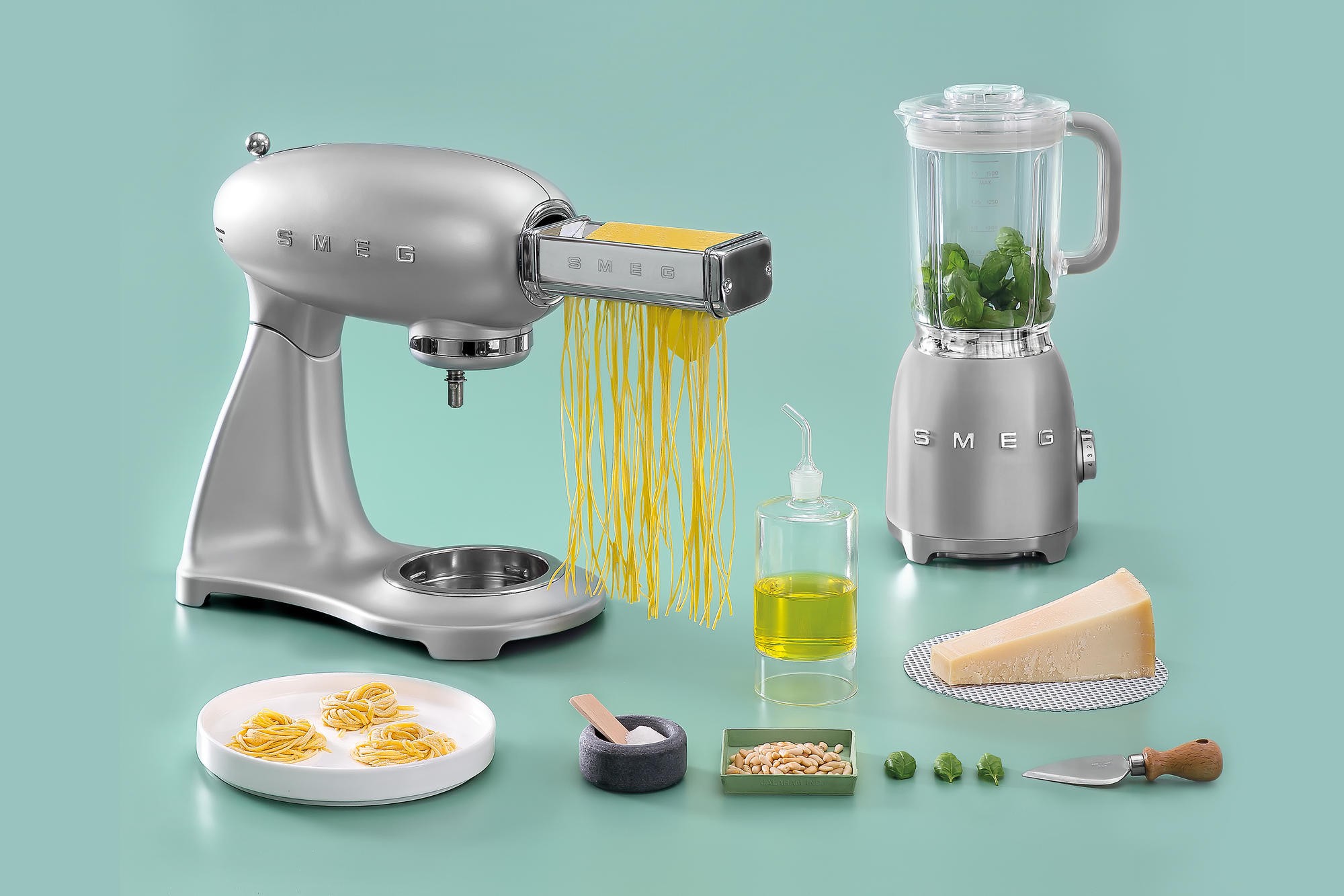 Un autre mélangeur italien, Smeg, apprécie la possibilité de connecter des pièces jointes supplémentaires. Par exemple, vous pouvez acheter un accessoire très pratique pour faire des spaghettis faits maison.